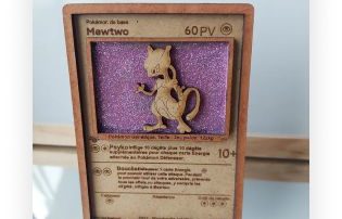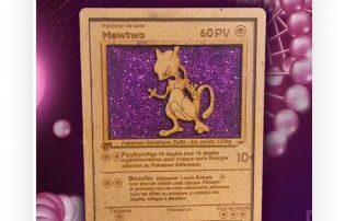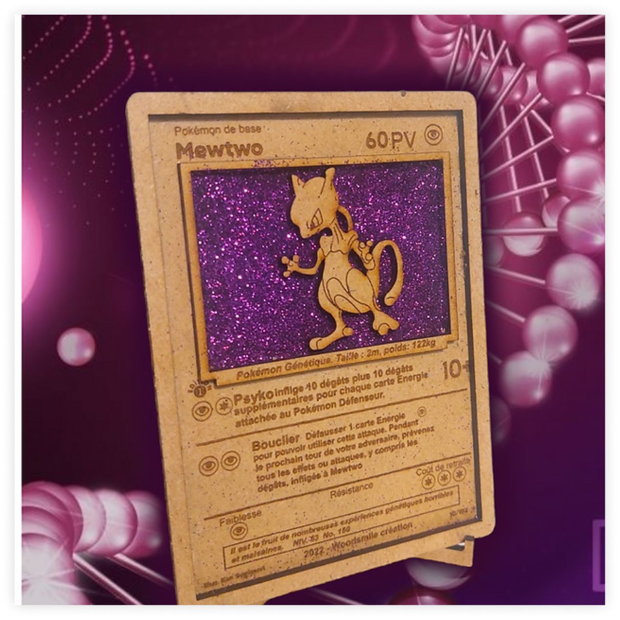 Carte pokémon en bois Mewto 1ère Edition holographique